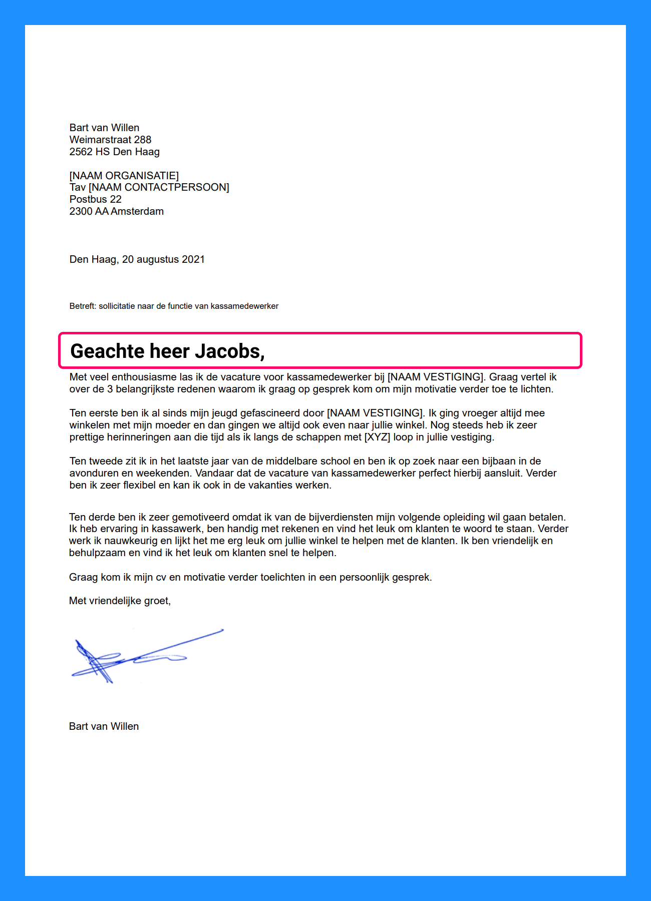 Voorbeeld aanhef sollicitatiebrief - Zakelijk Schrijven